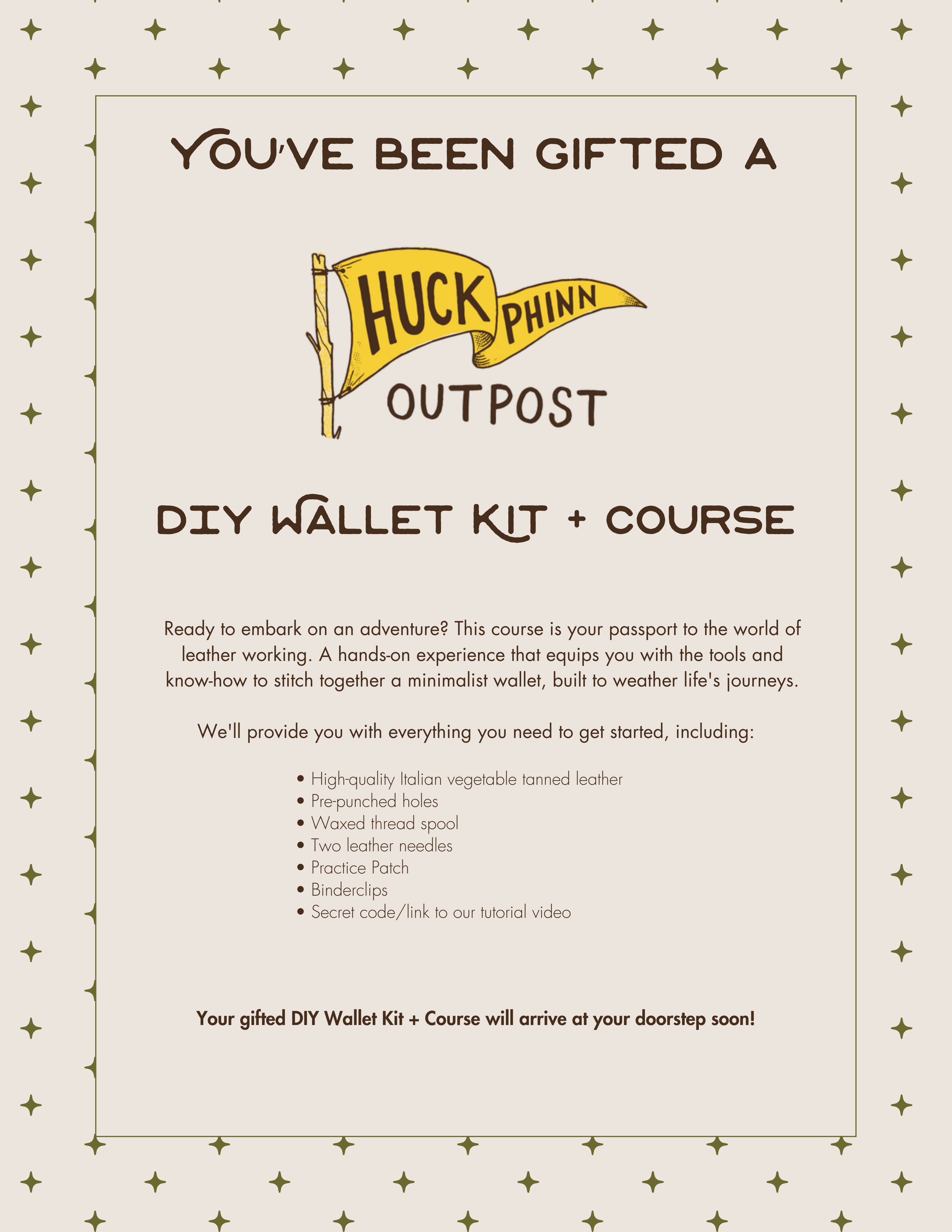 Want to send a friend on an adventure? This course is a passport to the world of leather working. A hands-on experience that equips them with the tools and know-how to stitch together a minimalist wallet, built to weather life's journeys.