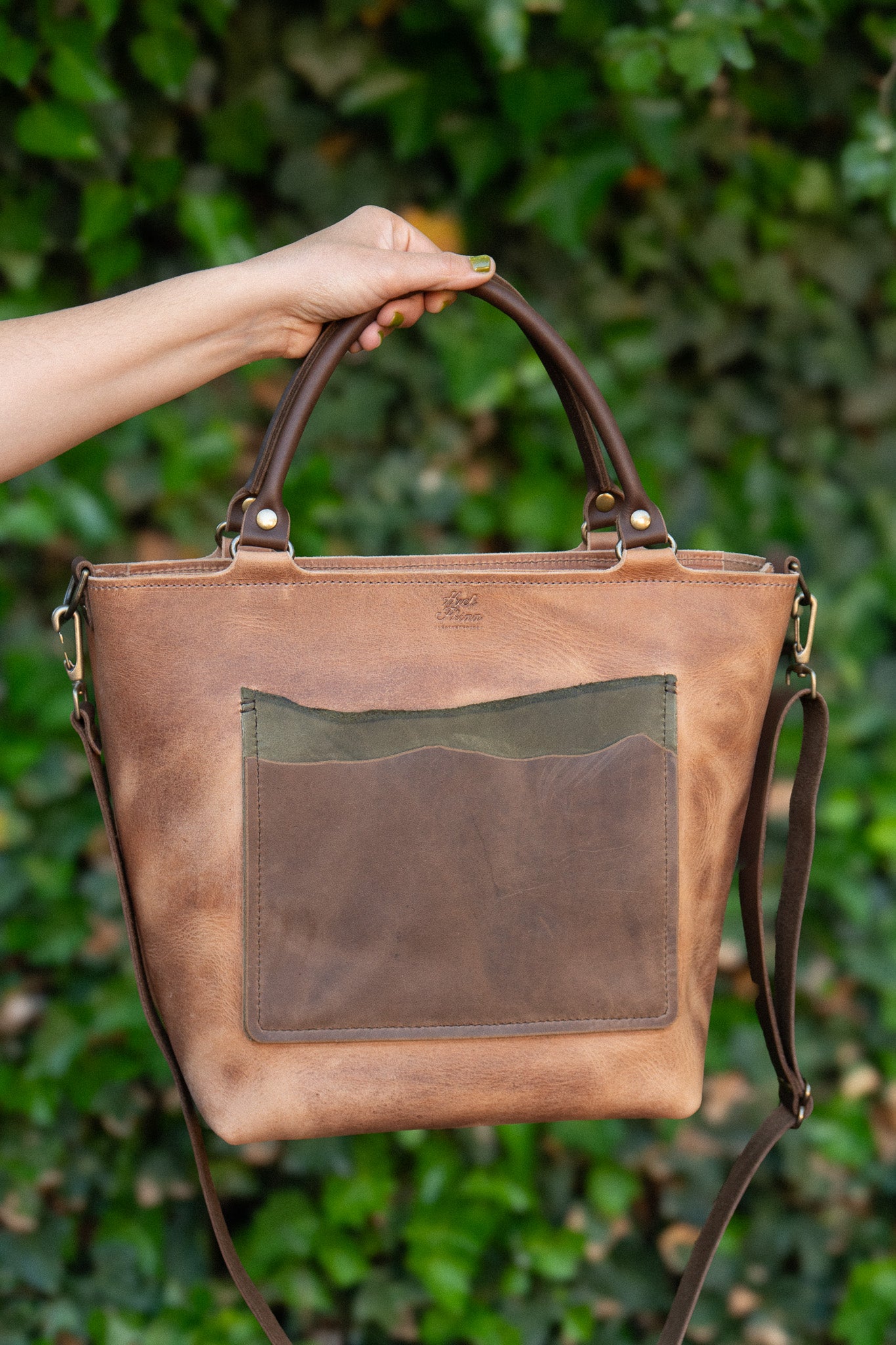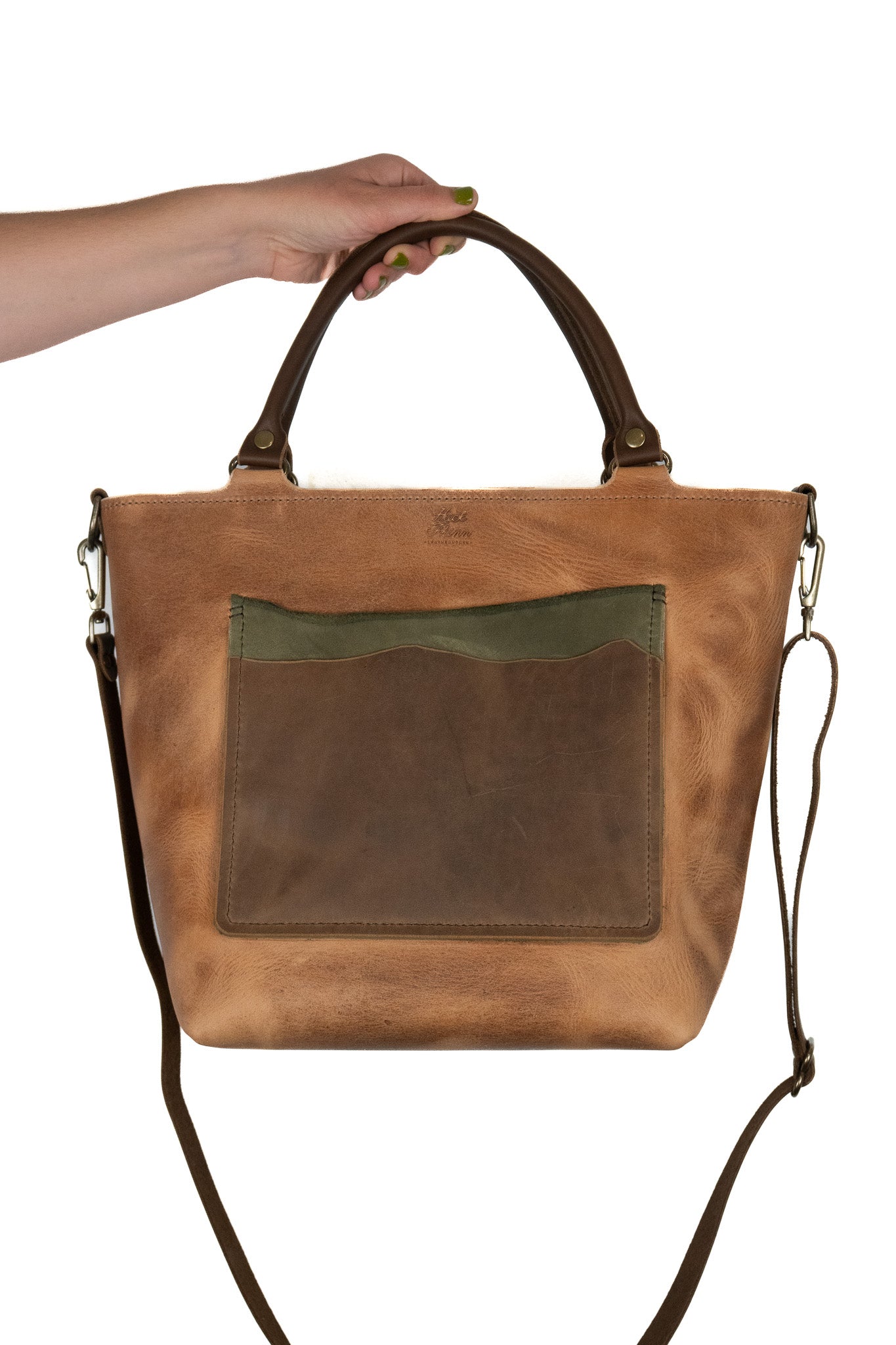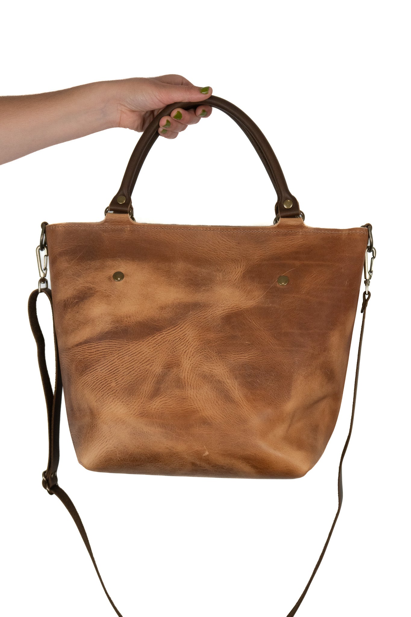 This tote has some beautiful characteristics, scratches and scaring from the natural hide. Please keep in mind when ordering, this bag will have imperfections that lend to wonderful character & a completely unique tote.