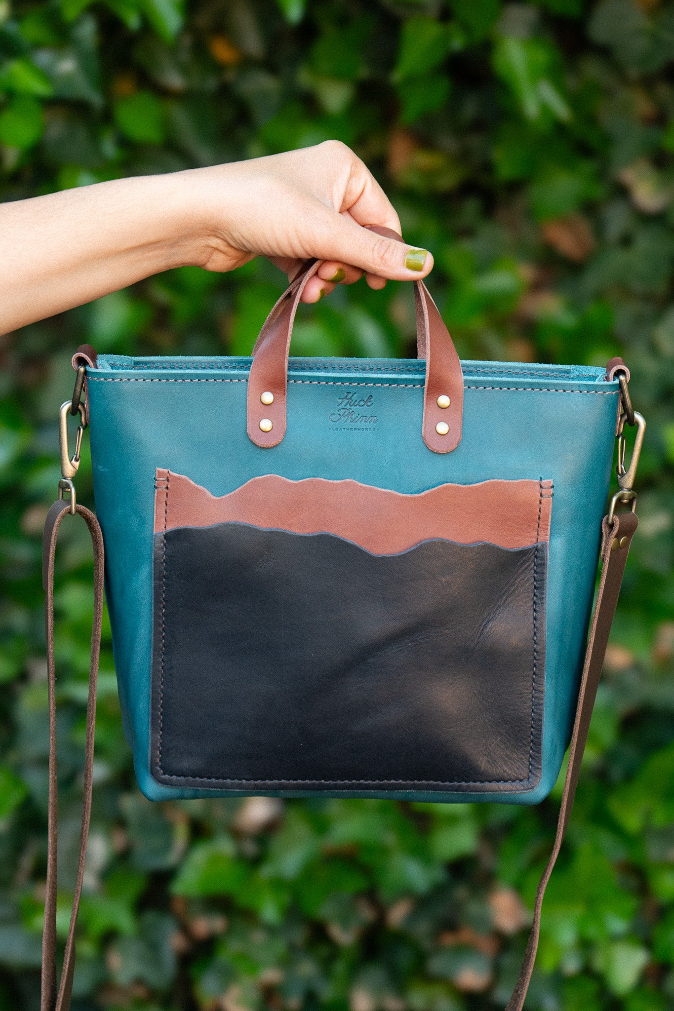 A miniature version of our signature Landscape Series Totes. We used the natural curves of the hide to create landscapes with the pockets.