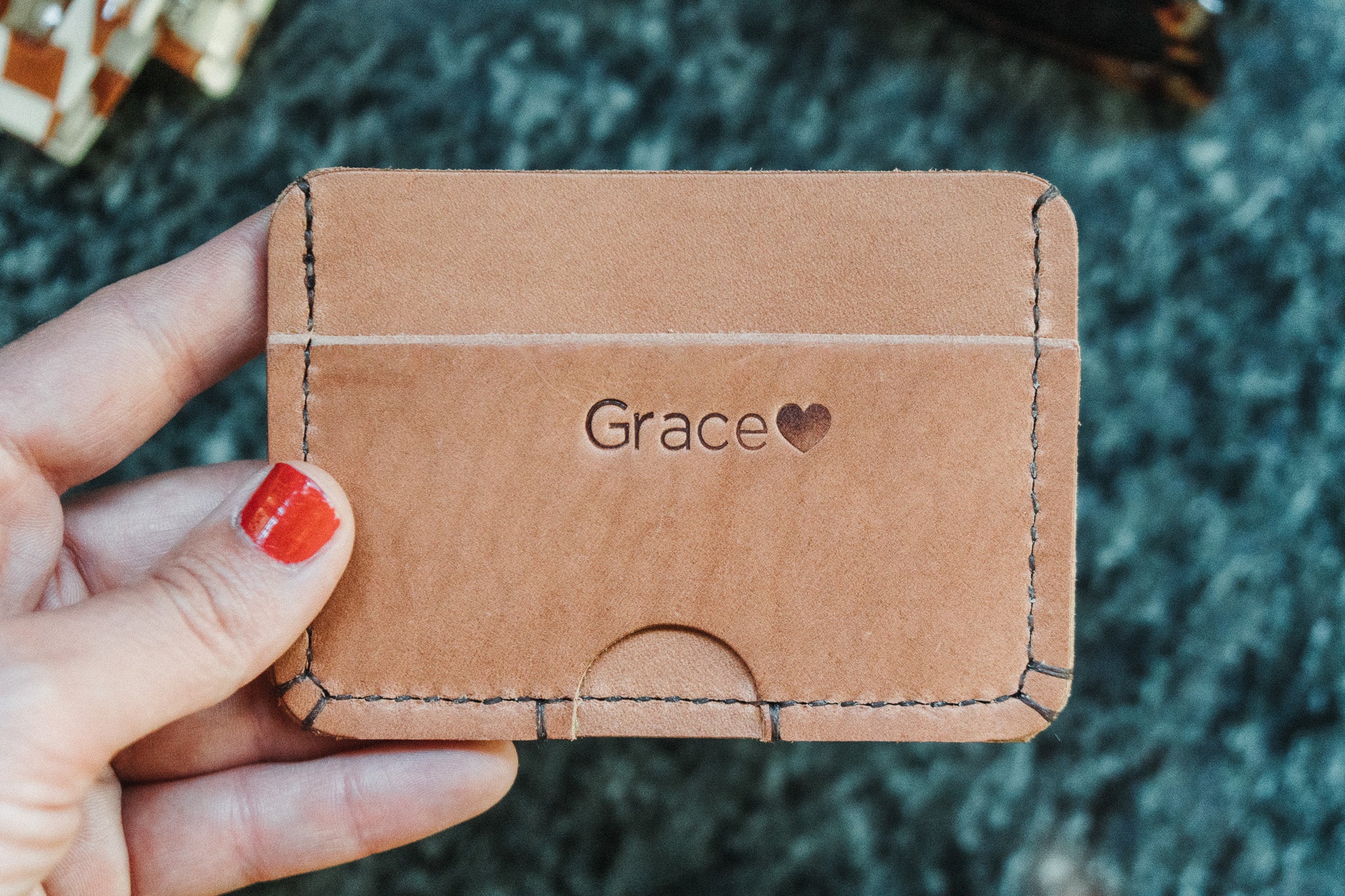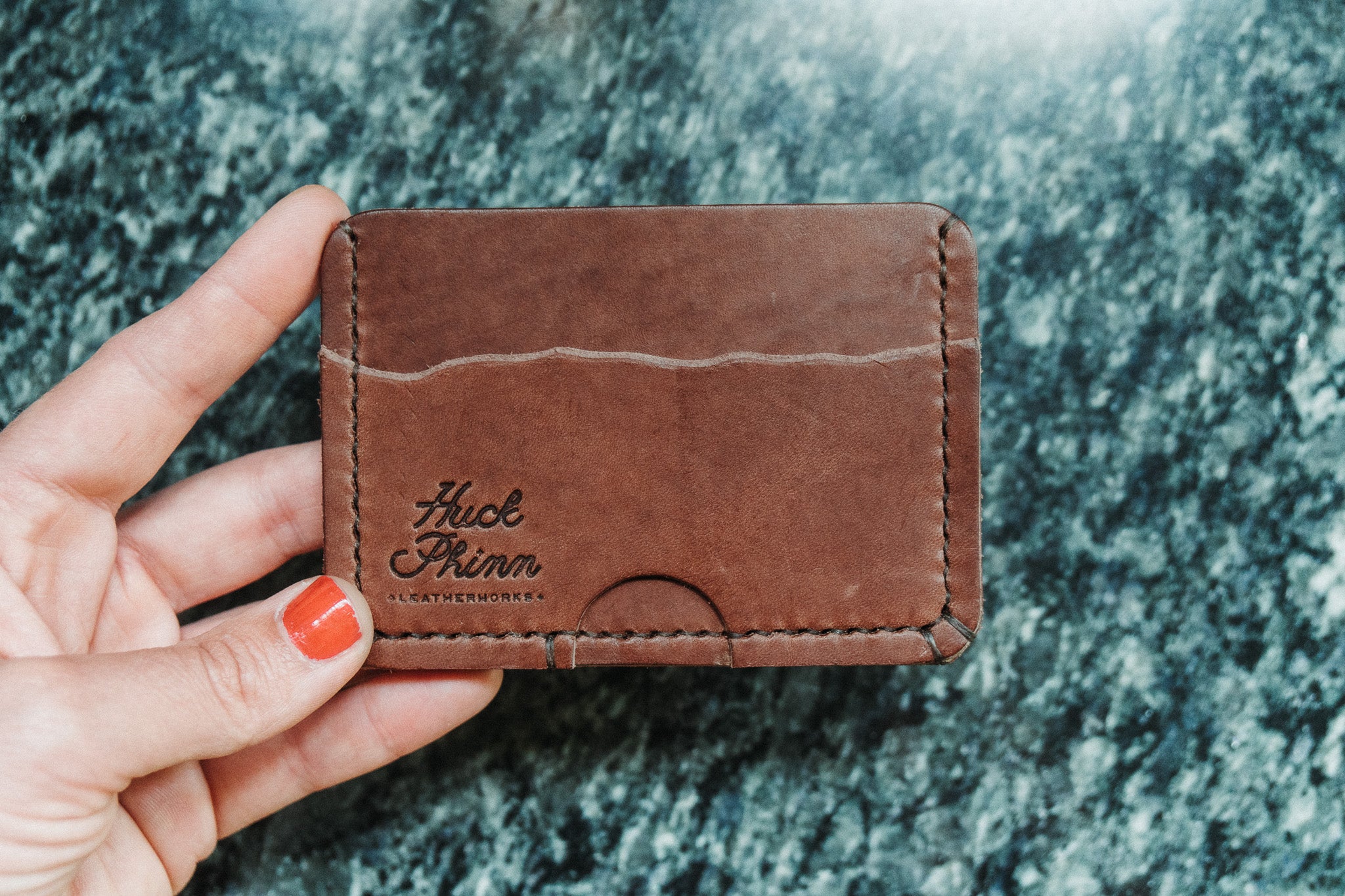 This wallet has some beautiful characteristics, scratches and scaring from the natural hide. Please keep in mind when ordering, it will have imperfections that lend to wonderful character & a completely unique piece.