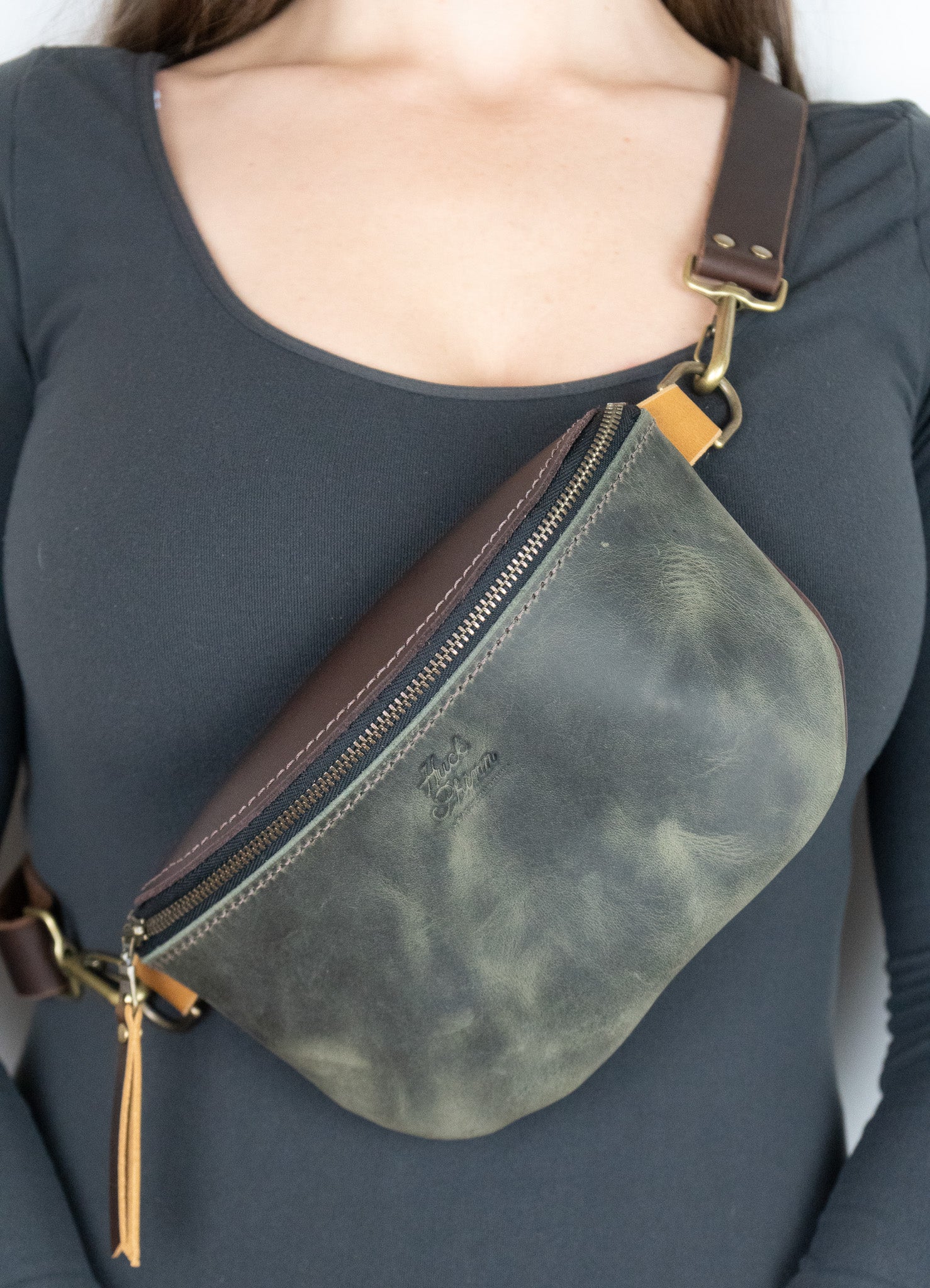 Dark Moss + Pebbled Brown + Onyx Zipper